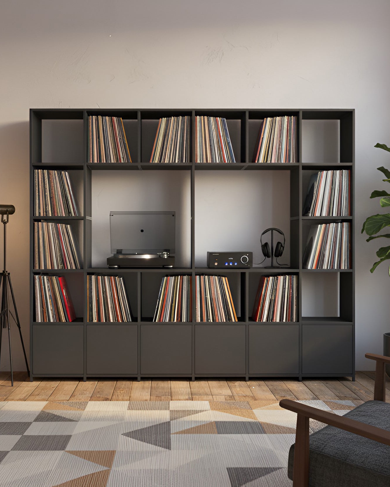 very own bespoke furniture designs. You can start by altering one of our existing modular furniture configurations, be it a modular TV unit, vinyl storage system, sideboard, shelving unit, or even a home office unit with one of our unique desks. Simply choose your configuration and get creative. But if you want to go all out, you can design your own custom piece of furniture from scratch too. It’s all done in our clever and intuitive 3D configurator.
