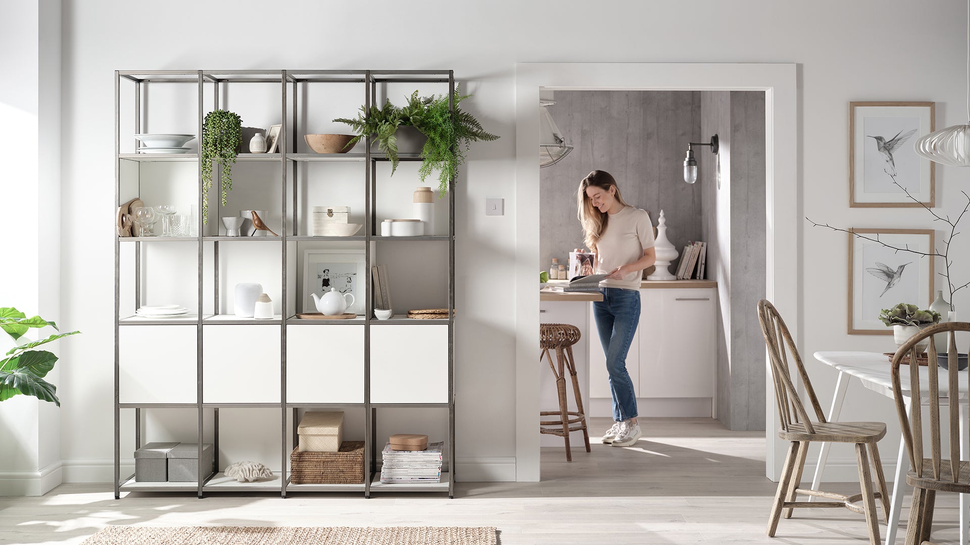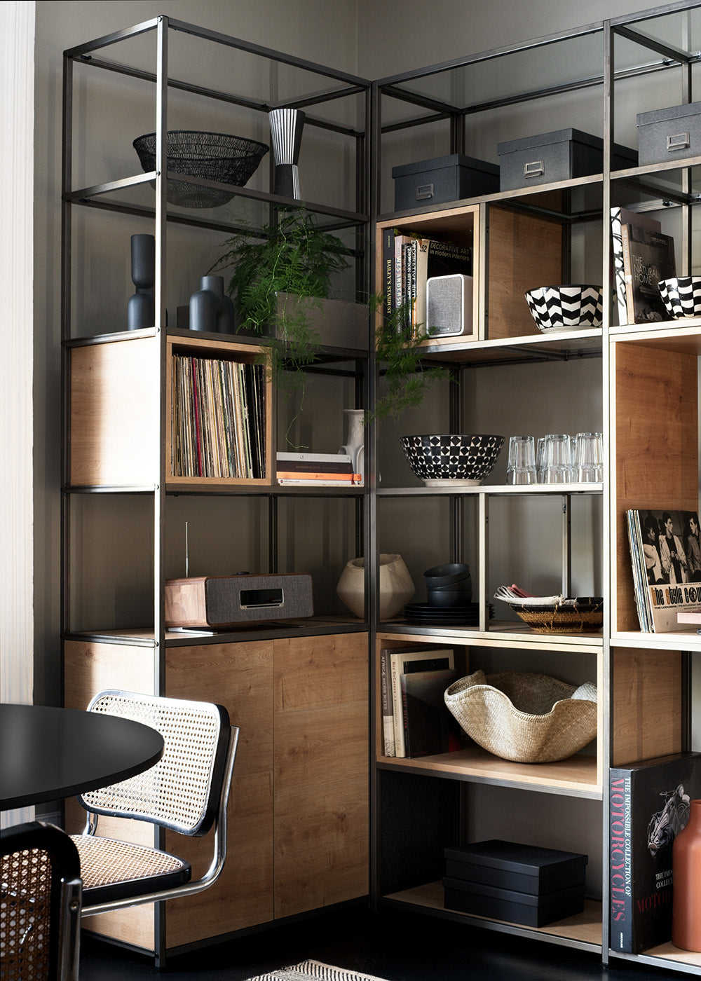 Shelved is a modular furniture system designed by you, and made by us. Whether you’re looking to add or change the décor of your space, or find something that fits your existing aesthetics, our system gives you the option to get the look you really want. The Shelved steel framework is available in crisp White, contemporary Anthracite, and that sought-after industrial Clear Coat. With Graphite, White, or Oak panel finishes, you can mix and match your system’s colours to create the perfect combination for your own
