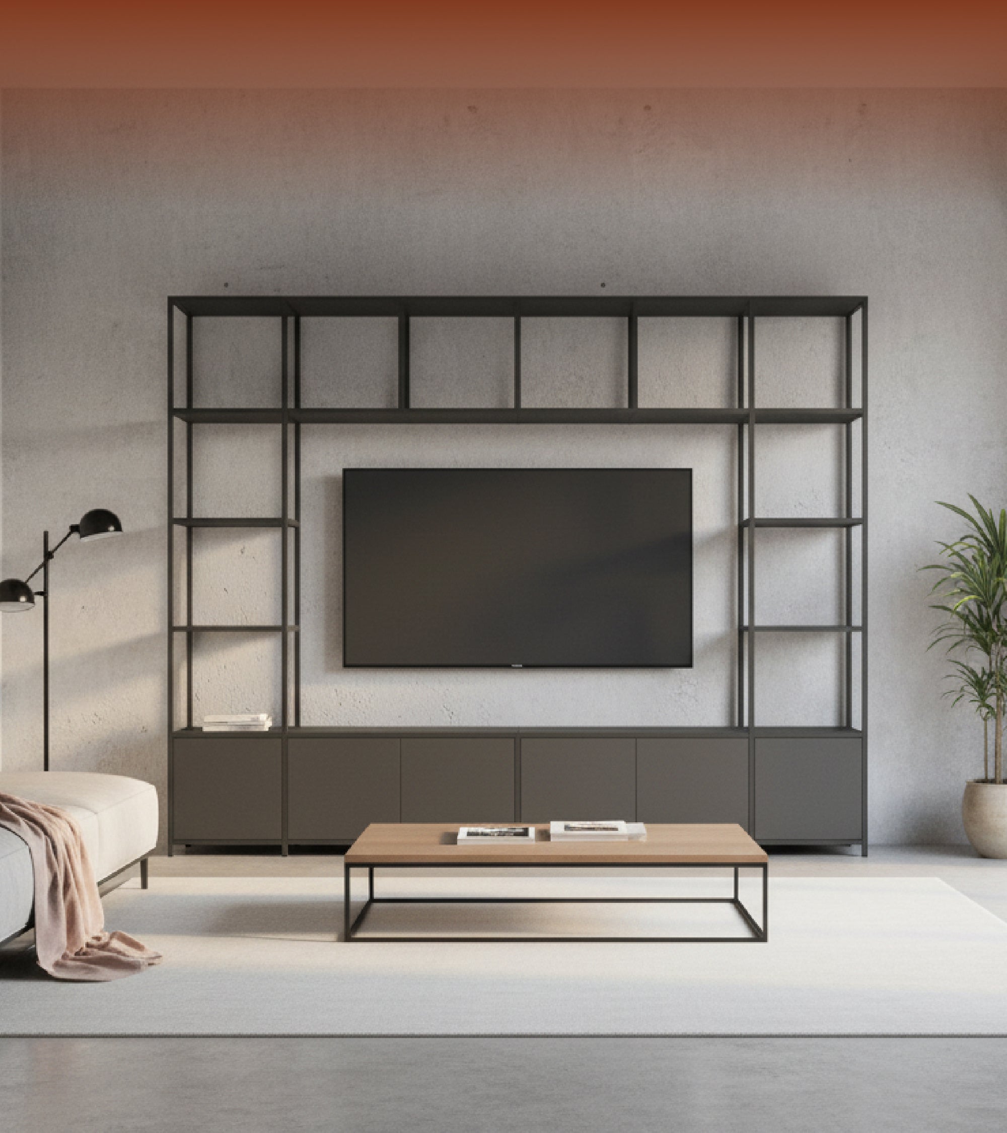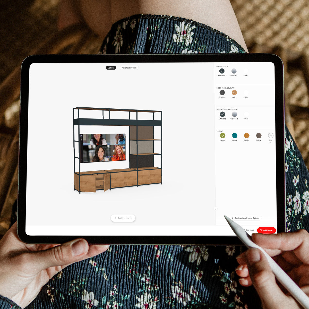 very own bespoke furniture designs. You can start by altering one of our existing modular furniture configurations, be it a modular TV unit, vinyl storage system, sideboard, shelving unit, or even a home office unit with one of our unique desks. Simply choose your configuration and get creative. But if you want to go all out, you can design your own custom piece of furniture from scratch too. It’s all done in our clever and intuitive 3D configurator.