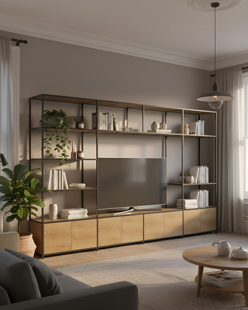 The best part? No two setups are the same. Whether you’re working with a small corner, a hallway, or the entire width of your living room, Shelved systems can be built to fit your exact space and layout — from wall-to-wall to U-shaped, freestanding to room divider.