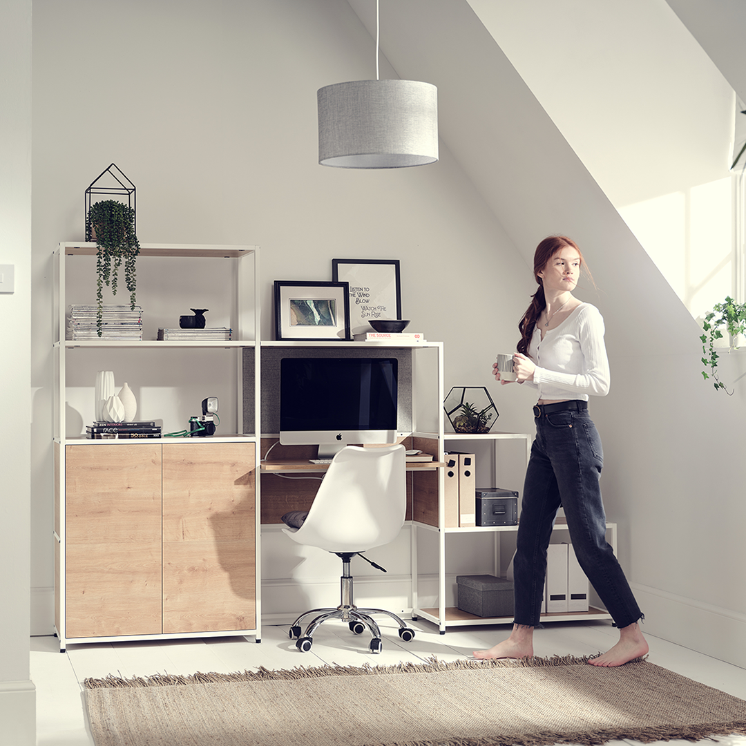 If you can't quite find an office modular furniture solution that fits your needs, why not create your own? Using our simple 3D product configurator, you can adapt one of our preset home office configurations, or even build your own custom desk and shelves configuration from scratch. Why not add fabric-covered pinboards, purpose-built planter boxes, or maximise shelf-space for your collection of books?
