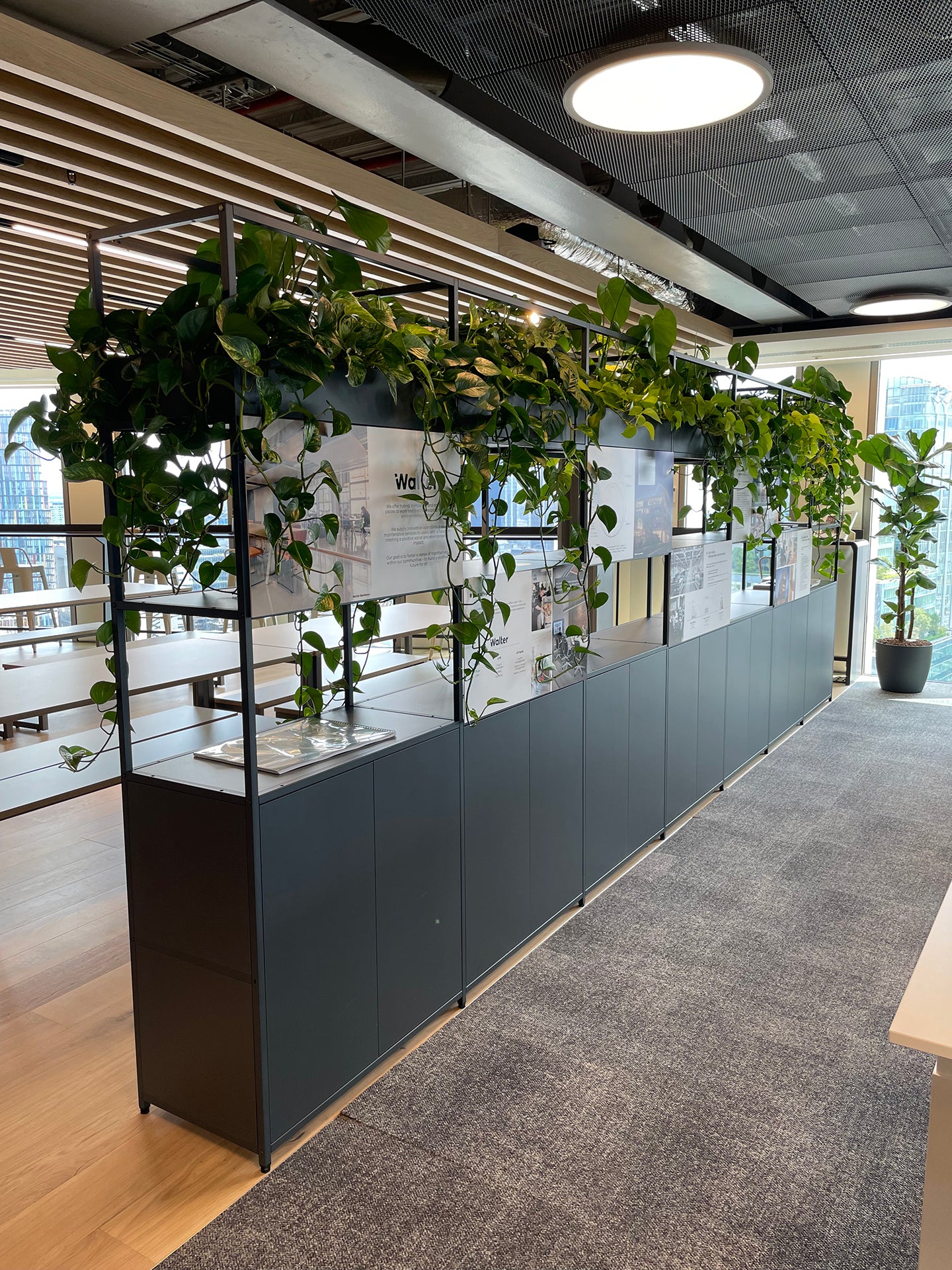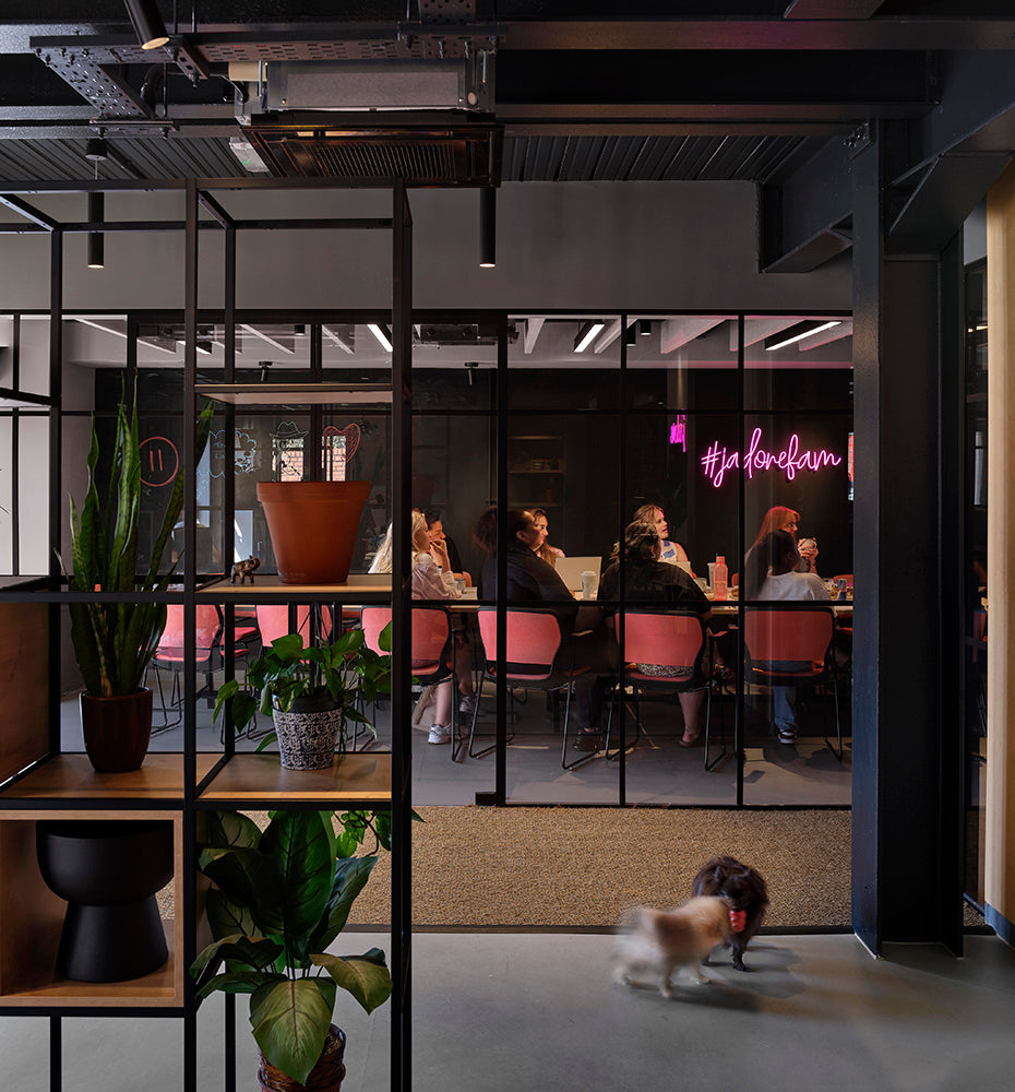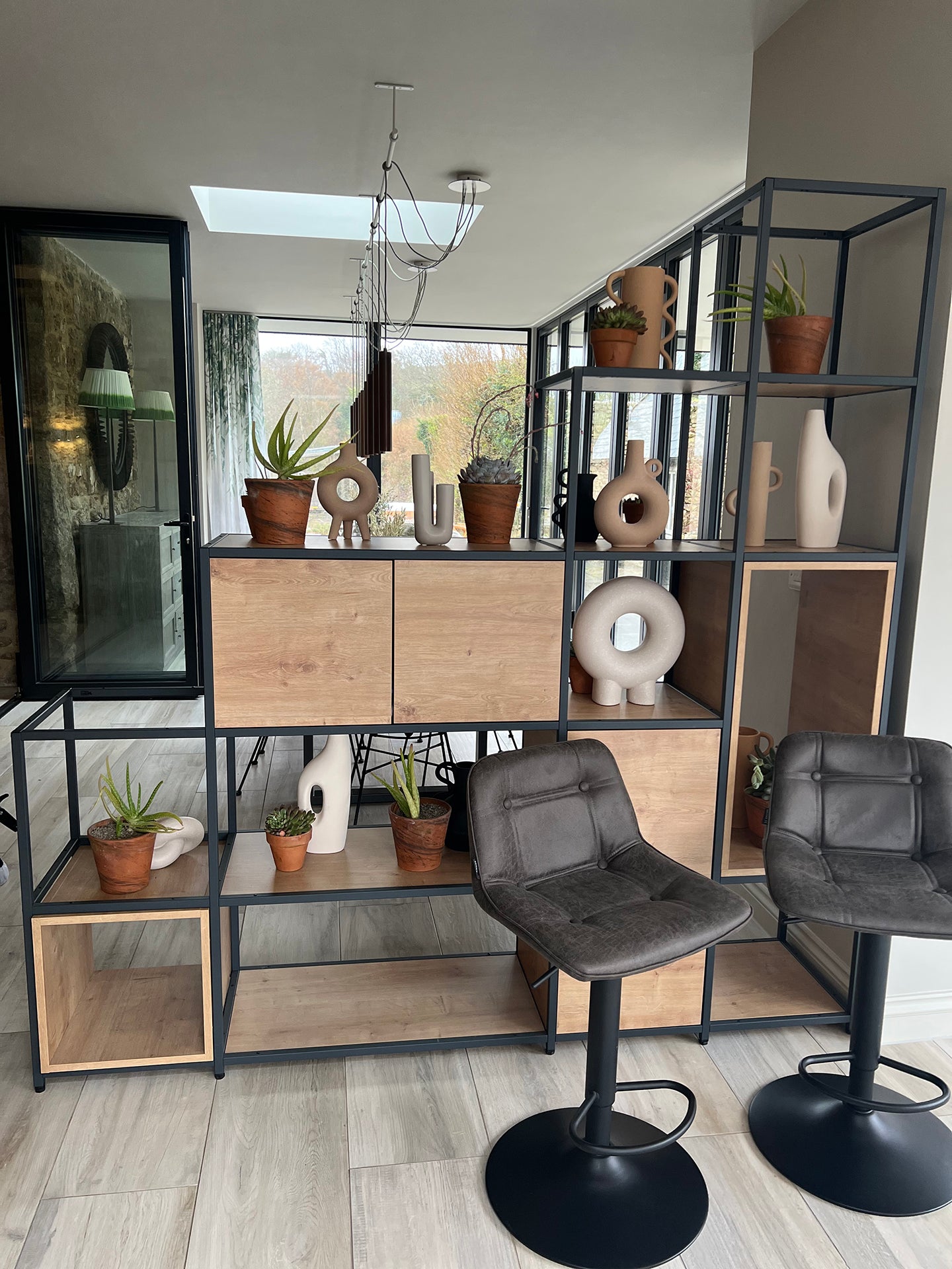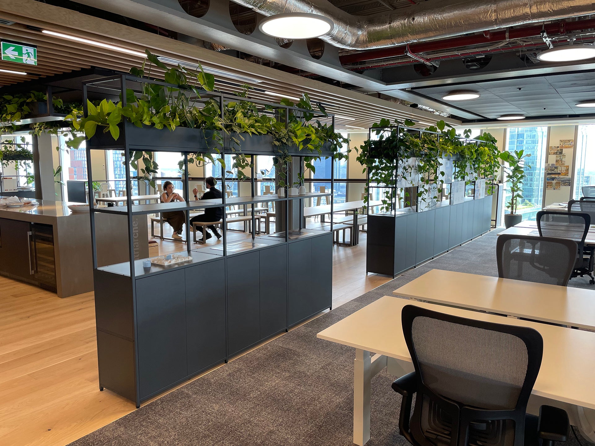 The Shelved modular storage system was originally conceived as a commercial office storage solution. With the evolving landscape of commercial offices, furniture needs to be more adaptable, customisable and flexible than ever before. Our grid shelving system works perfectly as a room divider, offering clear delineation of space whilst minimising the disruption to light levels thanks to its slender steel framework. With the addition of planter boxes, fabric panels and wooden storage accessories, Shelved storage units can be designed to suit any scheme.