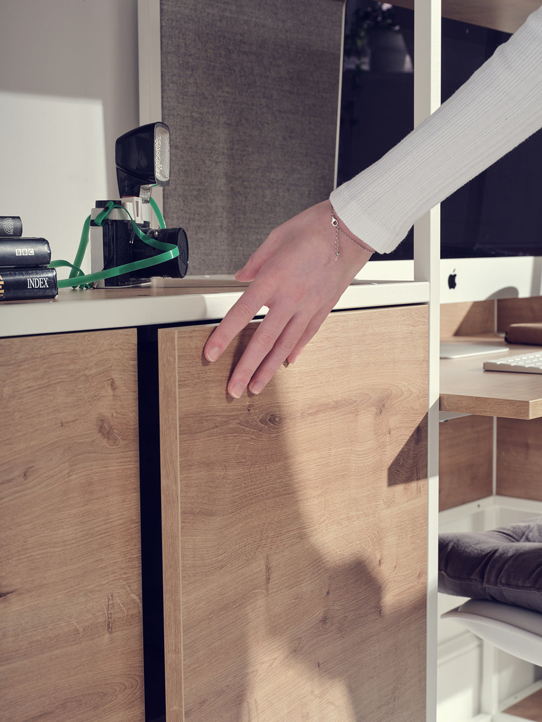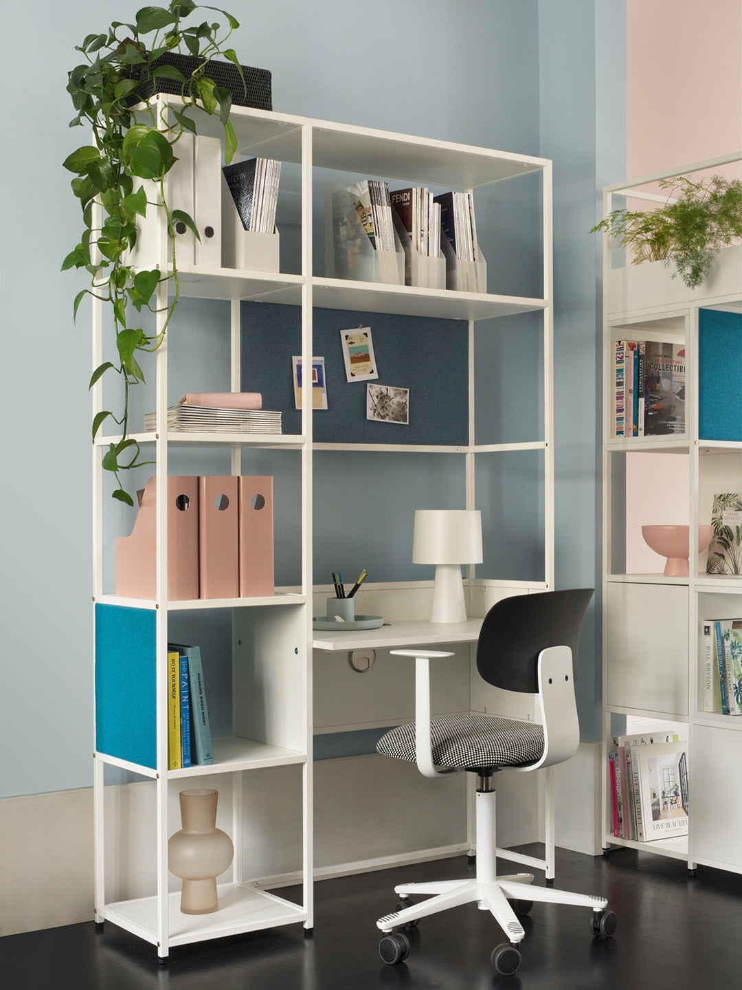 And should you find you need some more space in the future, you can change the design of your unit at any time thanks to the adaptable, modular framework. Add additional modules to extend your configuration, add shelves over the desk, or simply move some shelves around. It’s your furniture for your home.