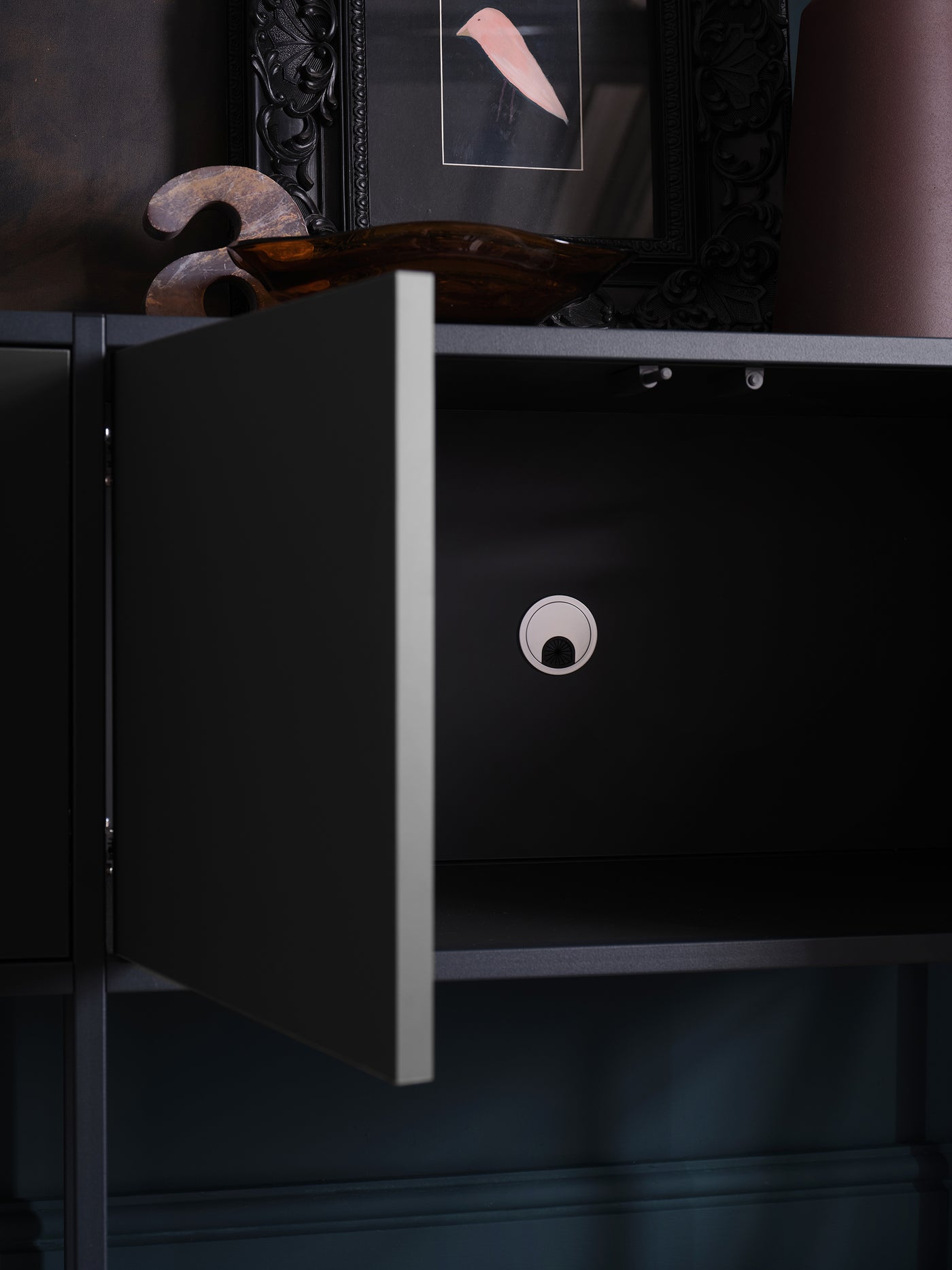 Embrace your dark side by finishing a Shelved sideboard with anthracite framework and graphite panels. This colour combo creates a real sense of luxury, combining practical storage with style.
