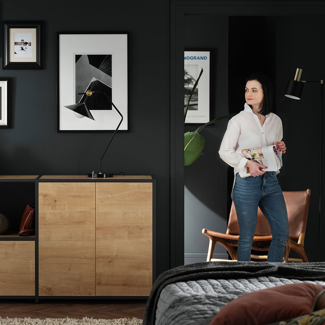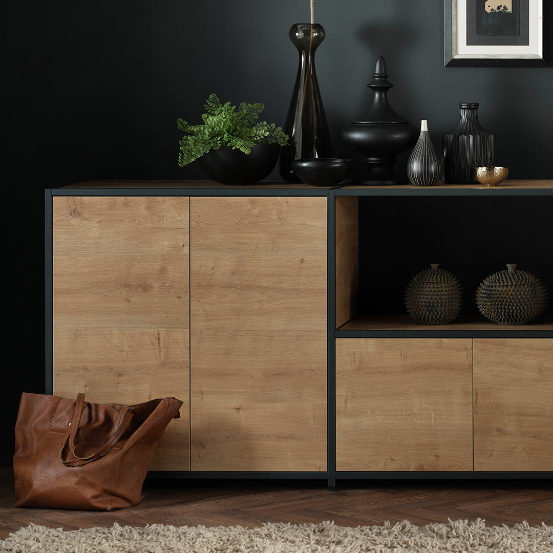 Embrace your dark side by finishing a Shelved sideboard with anthracite framework and graphite panels. This colour combo creates a real sense of luxury, combining practical storage with style.