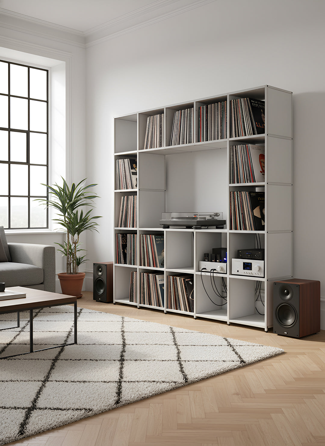 And thanks to the customisable nature of our system, your design isn't just limited to storing your vinyl. Create alcoves for your turntables. preamps and more, by building your solution just as you need it.
